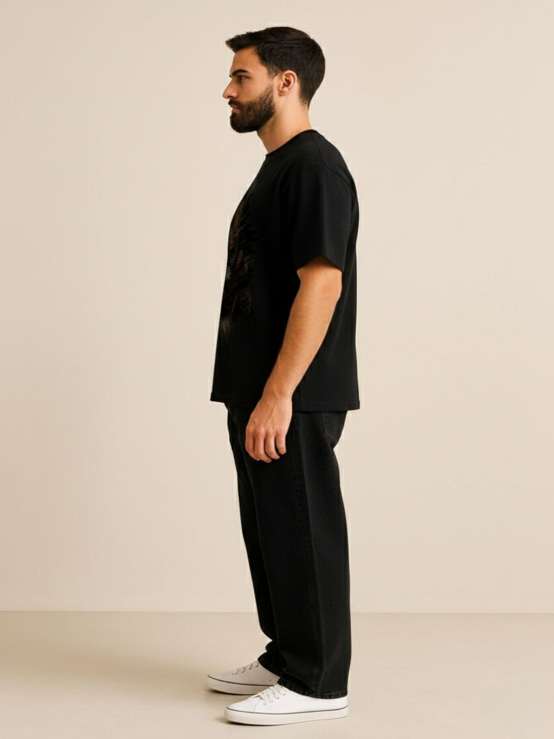 Crafted from high‑quality 240 GSM cotton, it offers a soft touch, oversized comfort, and lasting durability. The loose‑fit silhouette pairs effortlessly with denim, joggers, or tailored trousers, making it perfect for both casual and elevated streetwear looks.