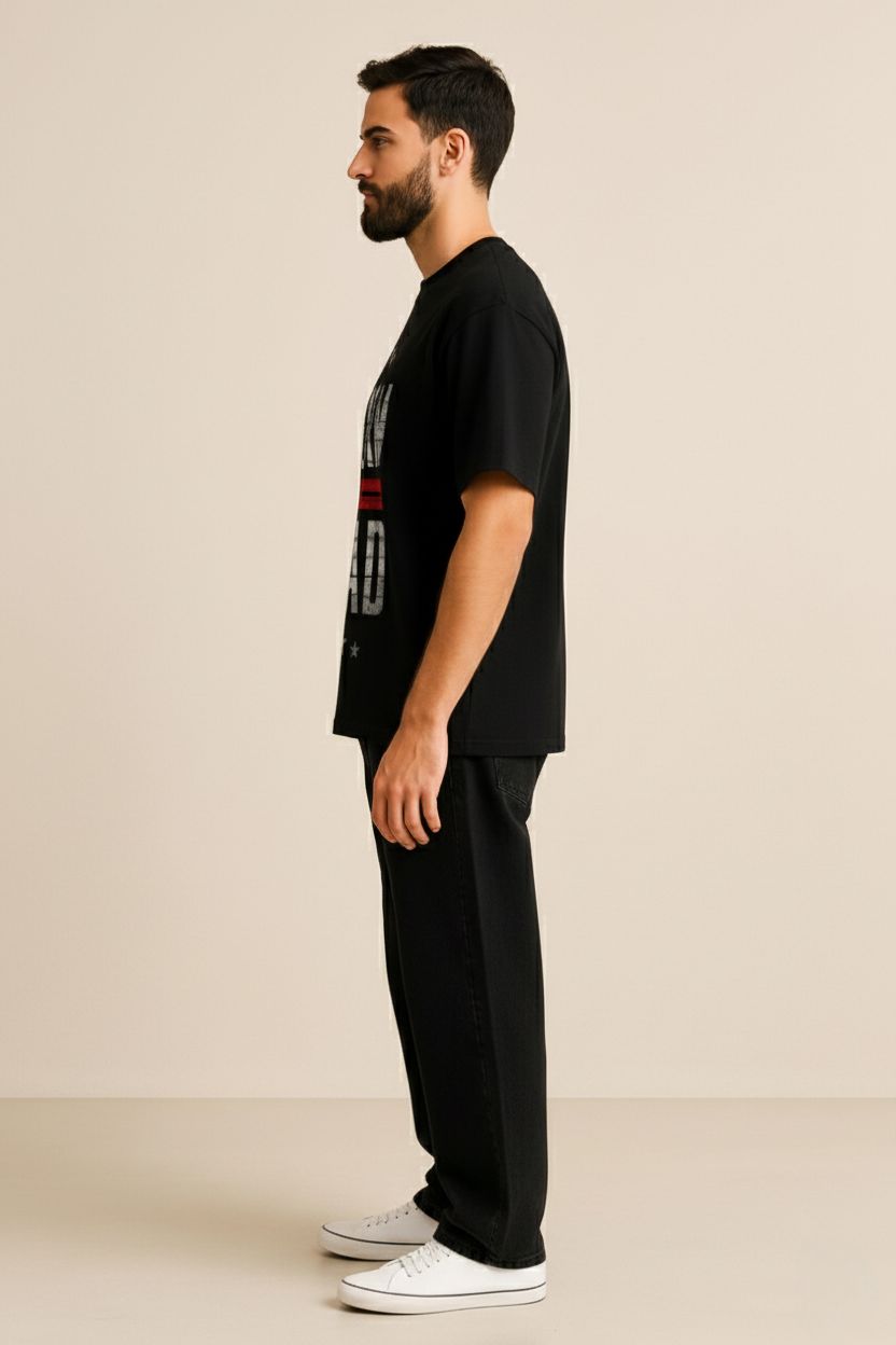 Say it without saying a word. From our Talk Tee To Me collection, this black oversized tee pairs minimal luxe design with cheeky, motivational one-liners. Premium cotton, relaxed drape, and a print that holds its edge—made for coffee runs, late nights, and everything in between.