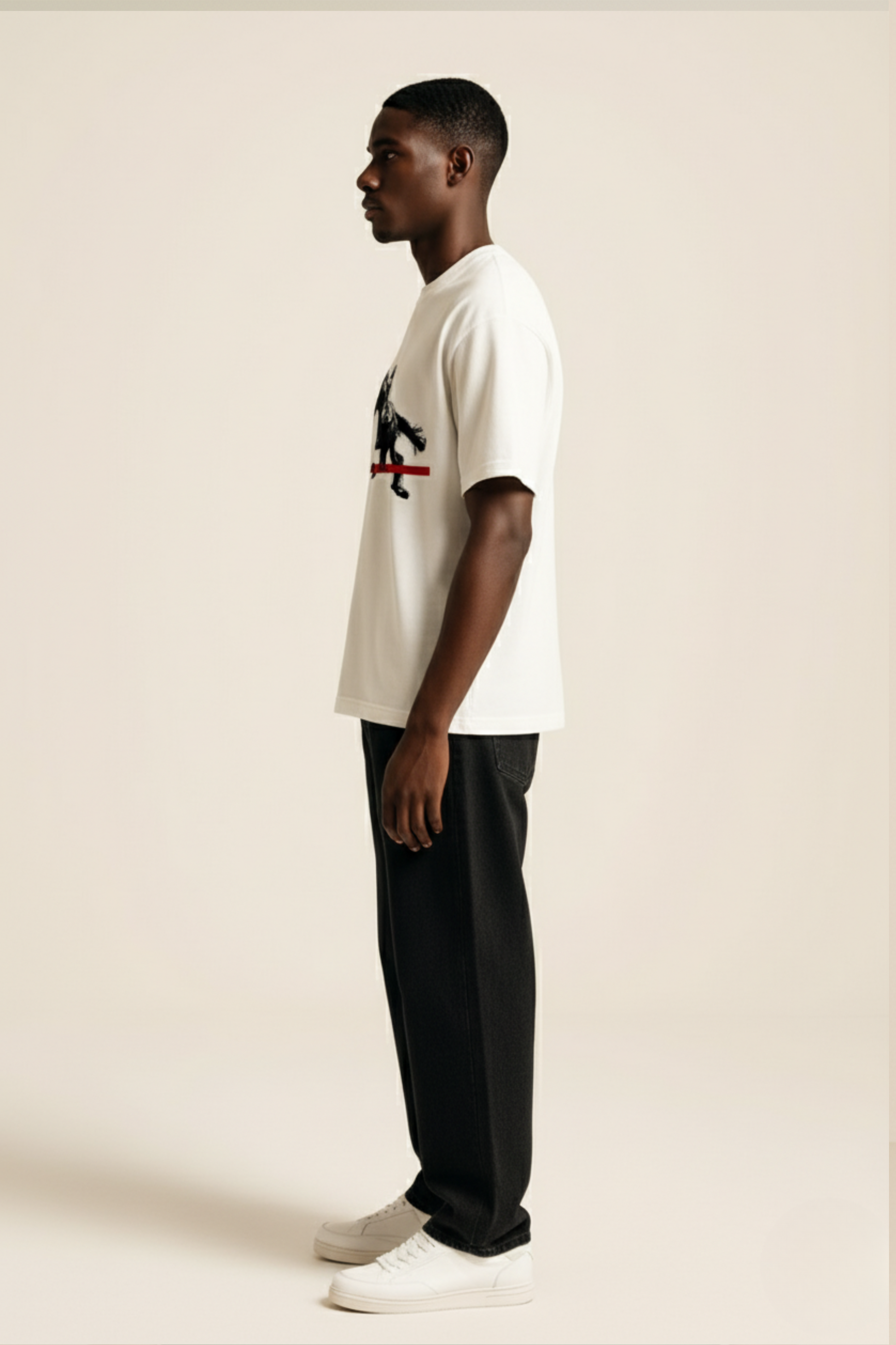 Crafted from high‑quality 240 GSM cotton, it offers a soft touch, oversized comfort, and lasting durability. The loose‑fit silhouette pairs effortlessly with denim, joggers, or tailored trousers, making it perfect for both casual and elevated streetwear looks.