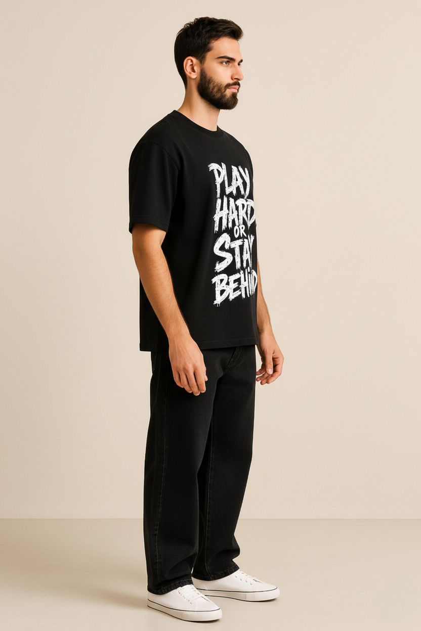 Say it without saying a word. From our Talk Tee To Me collection, this black oversized tee pairs minimal luxe design with cheeky, motivational one-liners. Premium cotton, relaxed drape, and a print that holds its edge—made for coffee runs, late nights, and everything in between.