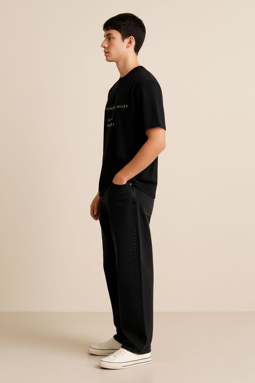 Say it without saying a word. From our Talk Tee To Me collection, this black oversized tee pairs minimal luxe design with cheeky, motivational one-liners. Premium cotton, relaxed drape, and a print that holds its edge—made for coffee runs, late nights, and everything in between.