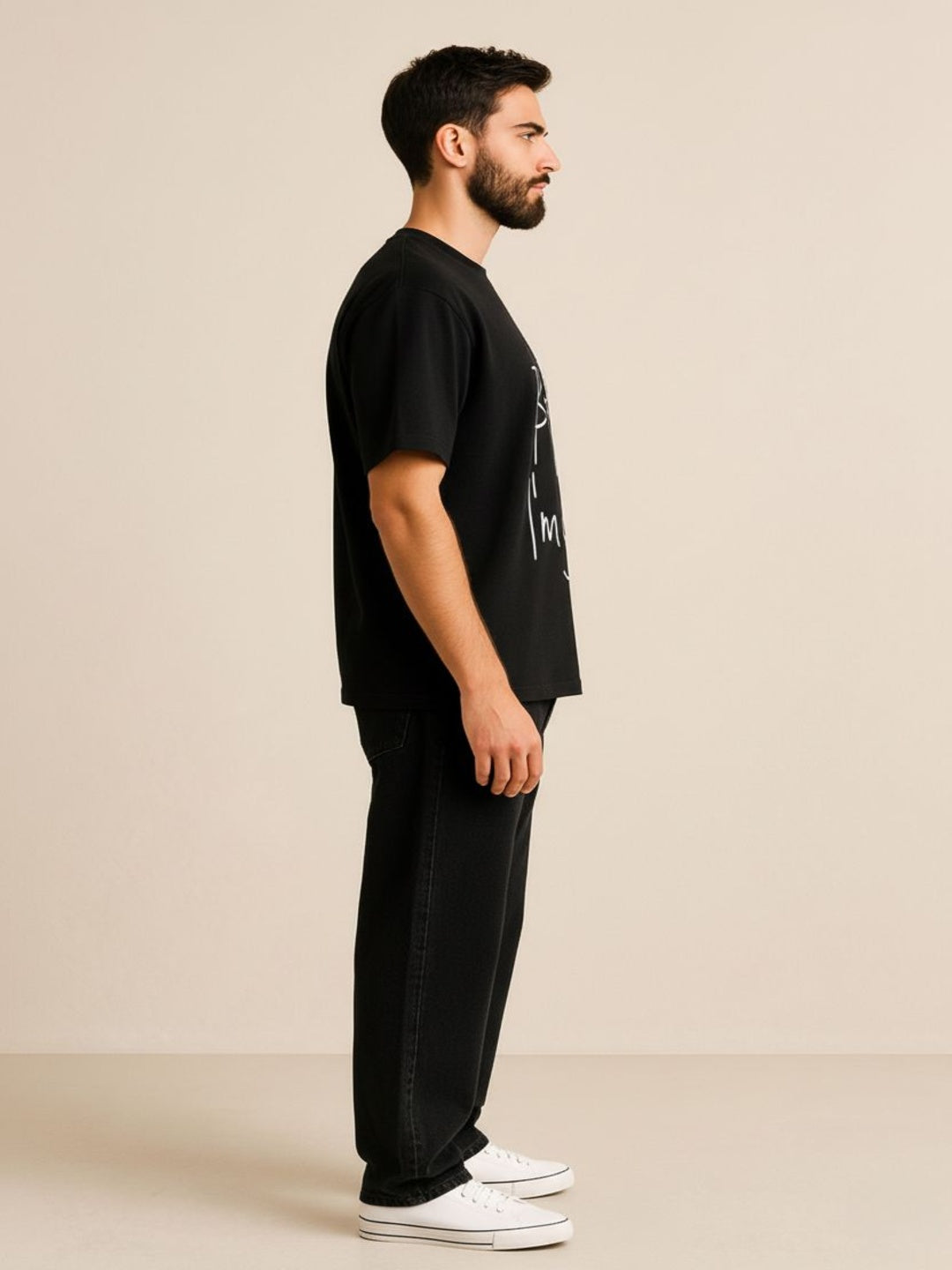Say it without saying a word. From our Talk Tee To Me collection, this black oversized tee pairs minimal luxe design with cheeky, motivational one-liners. Premium cotton, relaxed drape, and a print that holds its edge—made for coffee runs, late nights, and everything in between.